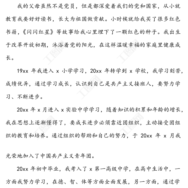 工圖網(wǎng)提供入黨個人自傳范文供會員免費下載。更多精彩黨課PPT素材,盡在工圖網(wǎng)。