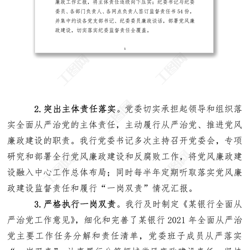 工圖網(wǎng)提供銀行紀(jì)委落實全面從嚴(yán)治黨監(jiān)督責(zé)任情況報告供會員免費下載。更多精彩黨課PPT素材,盡在工圖網(wǎng)。