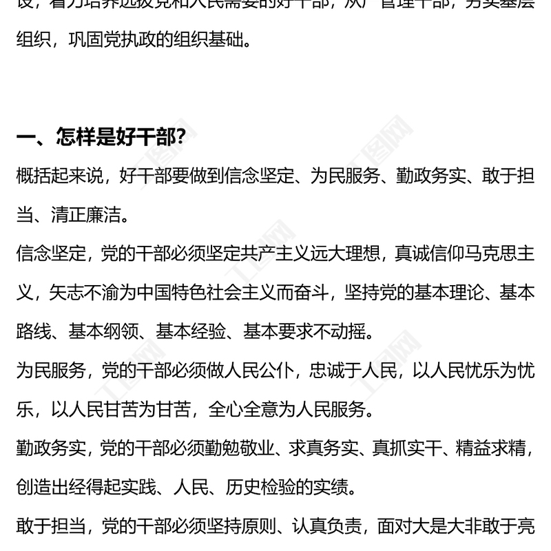 > 黨課講稿 > 新時(shí)代干部三問(wèn)PPT紅色精美著力培養(yǎng)選拔黨和人民需要的好干部黨課課件下載(講稿).DOCX 【圖片、文字、動(dòng)畫(huà)均可編輯】