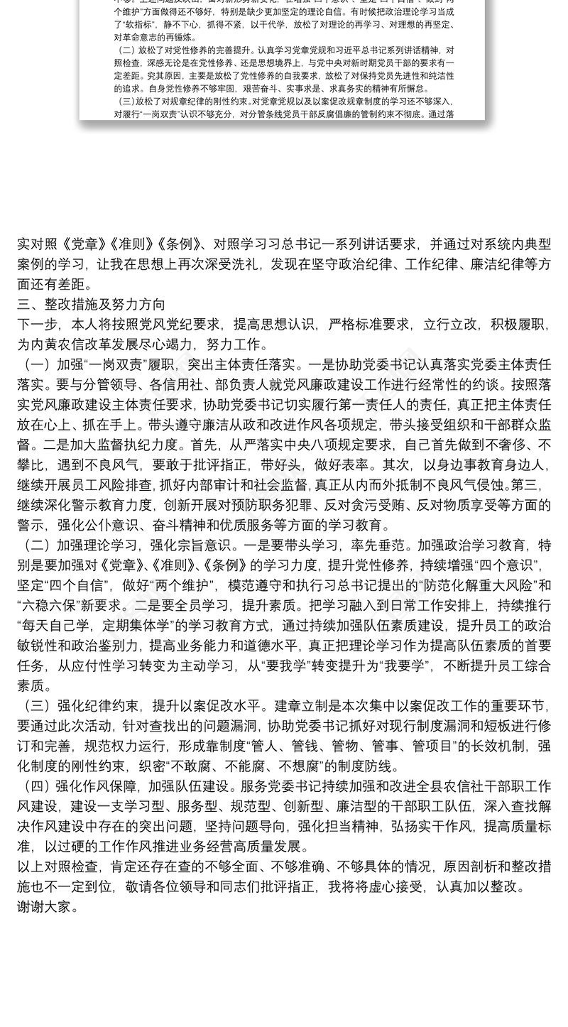 以案促改專題民主生活會(huì)對(duì)照檢查材料