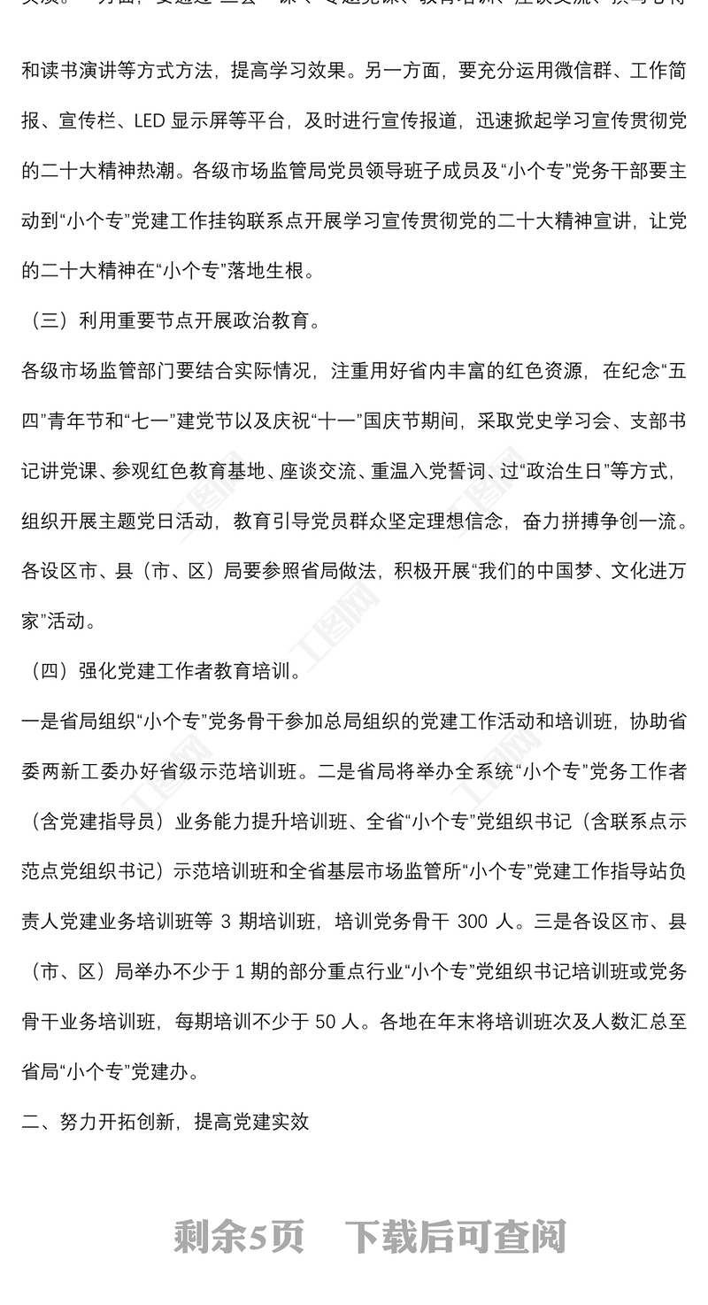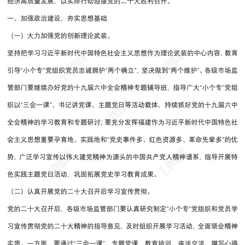 工圖網(wǎng)提供2022年小微企業(yè)個(gè)體工商戶專業(yè)市場(chǎng)黨建工作要點(diǎn)供會(huì)員免費(fèi)下載。更多精彩黨課PPT素材,盡在工圖網(wǎng)。