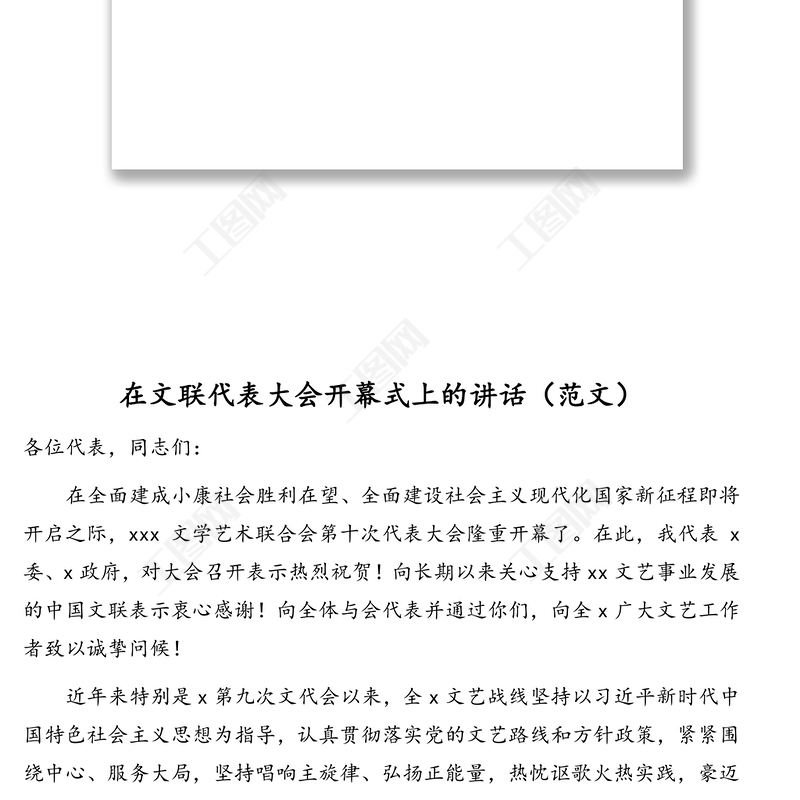 工圖網(wǎng)提供文聯(lián)代表大會開幕式、閉幕式講話稿(范文) (3篇)供會員免費(fèi)下載。更多精彩黨課PPT素材,盡在工圖網(wǎng)。