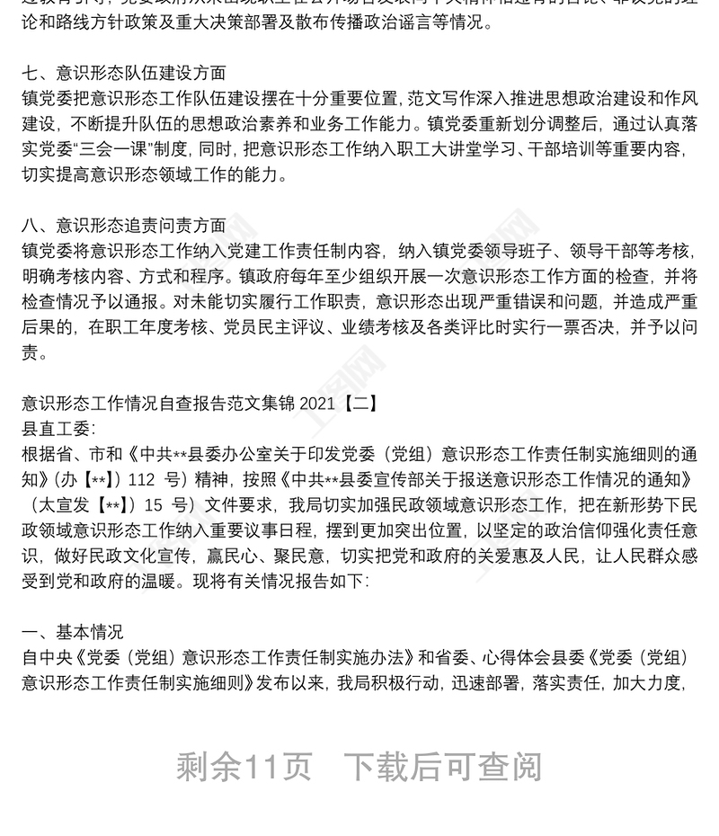 工圖網(wǎng)提供意識(shí)形態(tài)工作情況自查報(bào)告范文集錦2021供會(huì)員免費(fèi)下載。更多精彩黨課PPT素材,盡在工圖網(wǎng)。