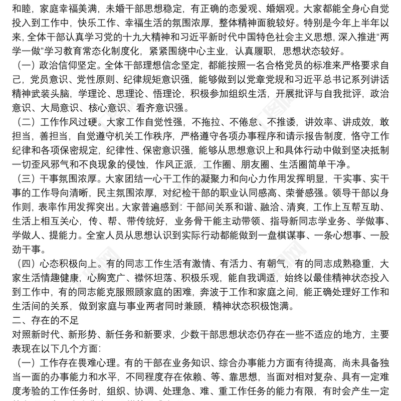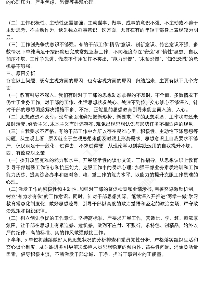 2022隊(duì)伍思想狀況分析情況報(bào)告2021年黨支部思想動(dòng)態(tài)分析報(bào)告預(yù)備黨員2021年11月思想?yún)R報(bào)2022干部隊(duì)伍思想狀況分析報(bào)告2022年輕黨員干部思想作風(fēng)狀況分析報(bào)告2022年上半年支部對(duì)黨員思想狀況分析供電所2022年二季度員工思想動(dòng)態(tài)分析報(bào)告民警隊(duì)伍思想狀況分析報(bào)告20222021黨員民主生活會(huì)上黨性分析材料2022黨員思想狀況談心談話匯報(bào)2023新時(shí)代中國(guó)特色社會(huì)主義思想黨性分析報(bào)告專題教育2023教師新時(shí)代中國(guó)特色社會(huì)主義思想黨性分析材料2023黨員個(gè)人問題清單黨性分析2023檢察官新時(shí)代中國(guó)特色社會(huì)主義思想黨性分析材料2023黨員個(gè)人檢視問題黨性分析