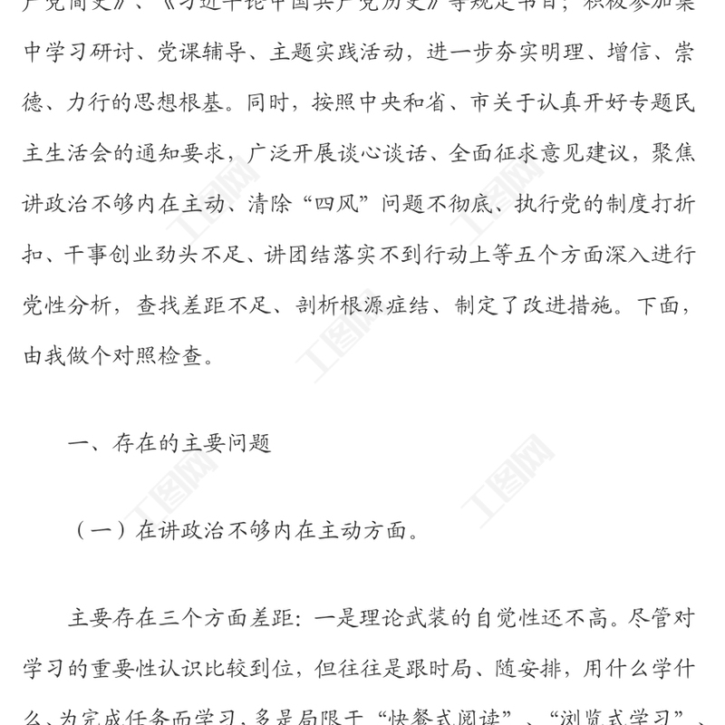 工圖網提供2022組織生活會“五個方面”對照檢查發(fā)言材料供會員免費下載。更多精彩黨課PPT素材,盡在工圖網。