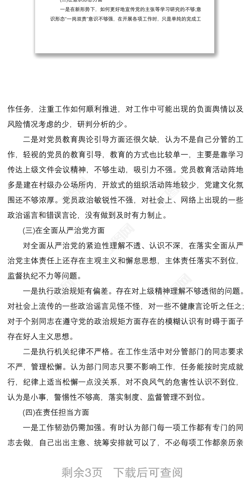 工圖網(wǎng)提供2021鄉(xiāng)鎮(zhèn)干部巡察整改專(zhuān)題民主生活會(huì)個(gè)人發(fā)言材料供會(huì)員免費(fèi)下載。更多精彩黨課PPT素材,盡在工圖網(wǎng)。
