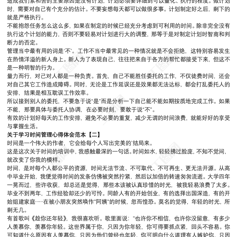 關(guān)于學(xué)習(xí)時間管理心得體會范本