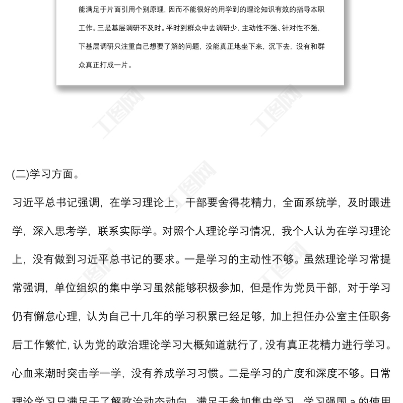 工圖網(wǎng)提供黨員干部2022年“迎盛會(huì)、鑄忠誠、強(qiáng)擔(dān)當(dāng)、創(chuàng)業(yè)績”主題教育專題組織生活會(huì)個(gè)人對(duì)照檢查材料供會(huì)員免費(fèi)下載。更多精彩黨課PPT素材,盡在工圖網(wǎng)。
