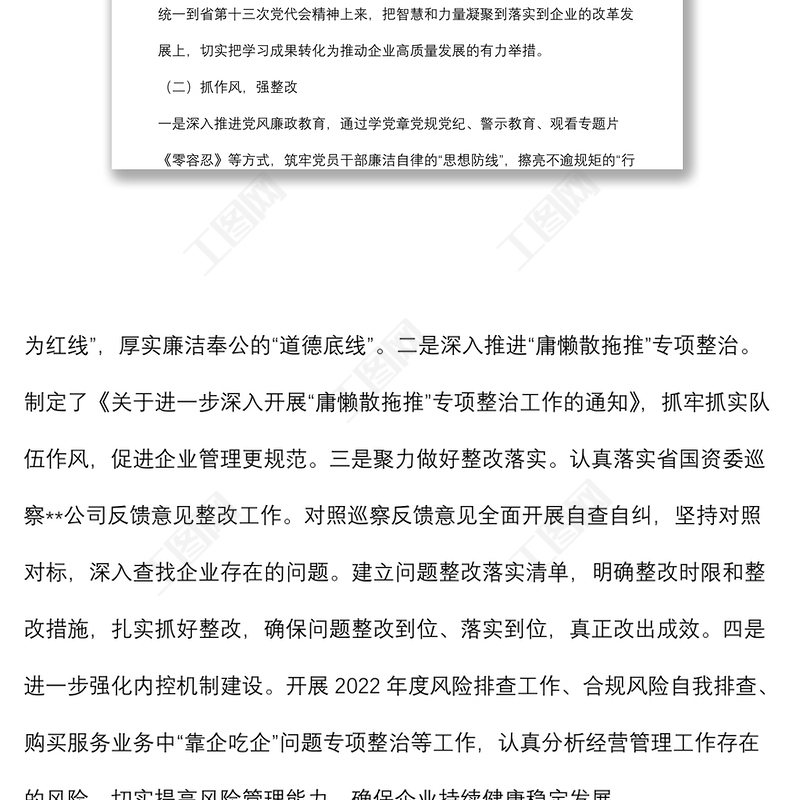工圖網(wǎng)提供某國(guó)企黨支部2022年上半年黨建工作情況總結(jié)及下半年工作計(jì)劃供會(huì)員免費(fèi)下載。更多精彩黨課PPT素材,盡在工圖網(wǎng)。