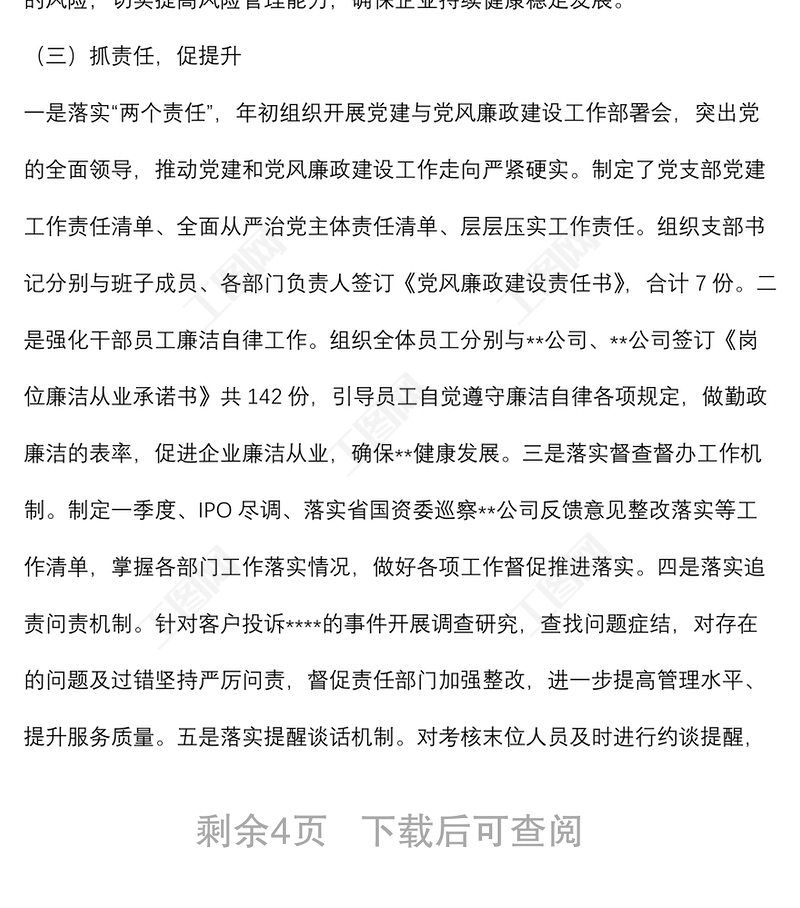 2022年上半年黨員思想?yún)R報(bào)黨支部2021年上半年關(guān)于學(xué)黨史工作總結(jié)黨支部關(guān)于2021年上半年履行全面從嚴(yán)治黨主體責(zé)任情況的報(bào)告機(jī)關(guān)黨支部2022年度機(jī)關(guān)黨建工作計(jì)劃工作要點(diǎn)2022年上半年支部對(duì)黨員思想狀況分析2021年度上半年落實(shí)全面從嚴(yán)治黨主體責(zé)任工作情況報(bào)告2022年上半年思想?yún)R報(bào)結(jié)合時(shí)事2022年機(jī)關(guān)黨支部黨建工作述職評(píng)議考核反饋問(wèn)題整改方案2022年上半年高校組織生活會(huì)2022國(guó)企黨建品牌創(chuàng)建工作方案2023學(xué)校黨建工作季度工作總結(jié)2023黨建揭榜掛帥完成情況總結(jié)2023廉潔機(jī)關(guān)建設(shè)工作情況總結(jié)2023黨建品牌工作完成情況總結(jié)2023抓基層黨建完成情況總結(jié)