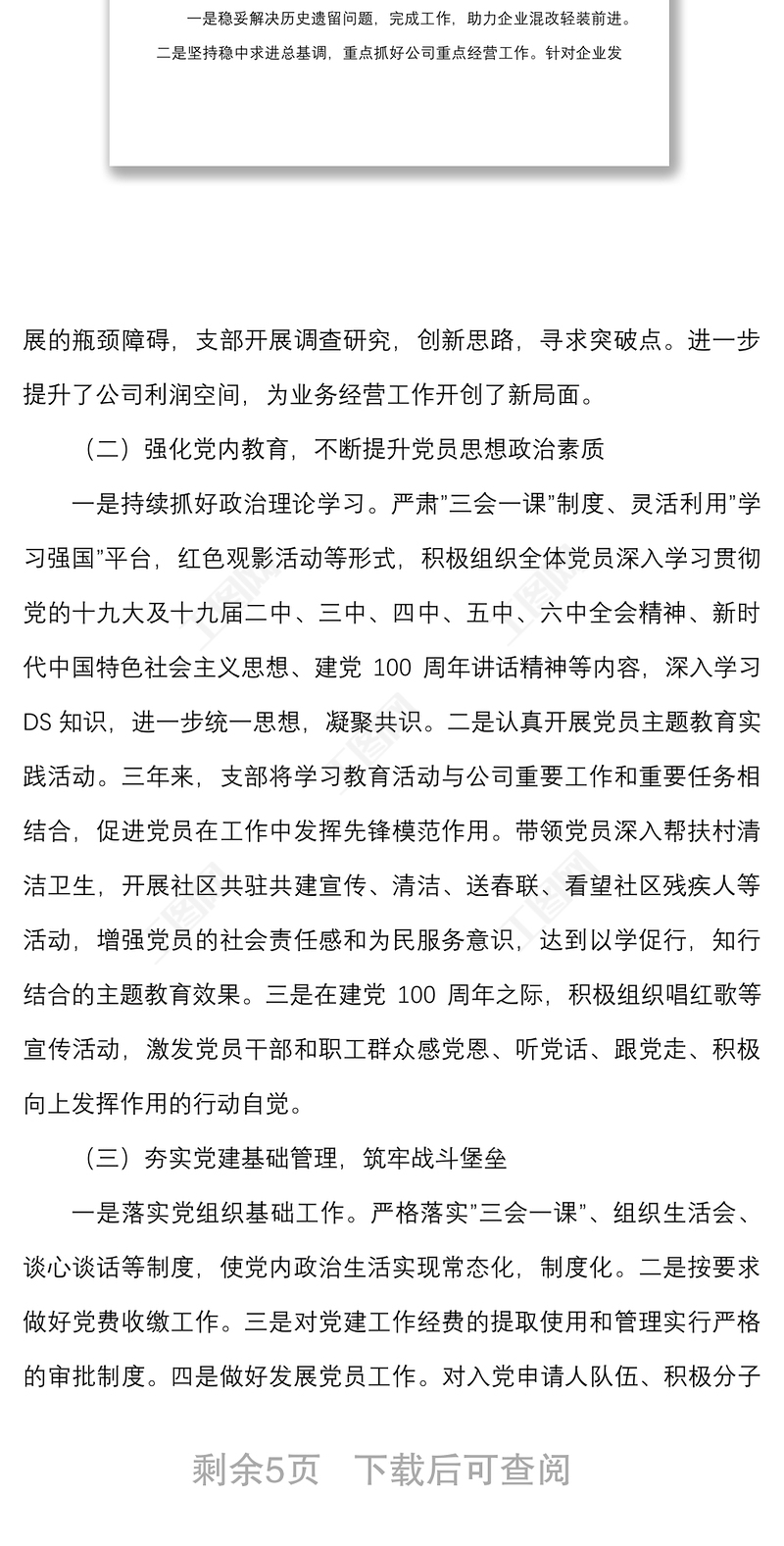 公司黨支部換屆工作報(bào)告范文三年工作匯報(bào)總結(jié)集團(tuán)國(guó)有企業(yè)國(guó)企 Array
