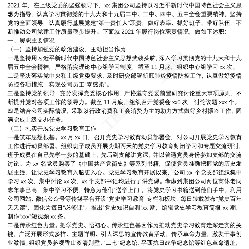 202120xx年度黨委支部書記履行全面從嚴(yán)治黨責(zé)任和抓基層黨建工作述職報告最新包含