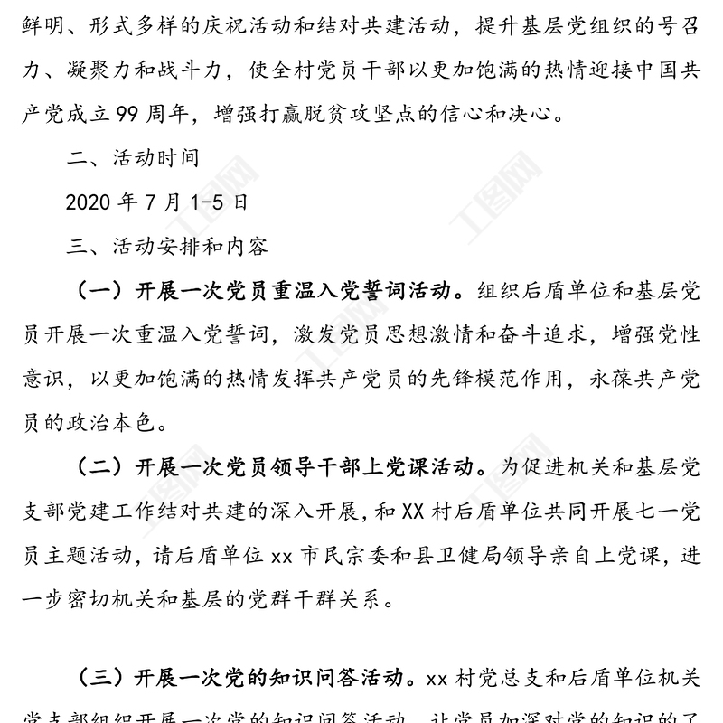 工圖網(wǎng)提供【支部七一活動(dòng)方案】基層黨支部紀(jì)念建黨99周年活動(dòng)方案(七一建黨節(jié)方案)供會(huì)員免費(fèi)下載。更多精彩黨課PPT素材,盡在工圖網(wǎng)。