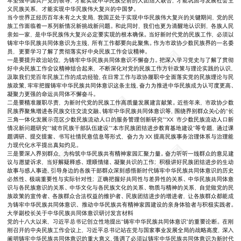 2021副校長關(guān)于中華民族共同體意識(shí)研討發(fā)言材料范文 Array