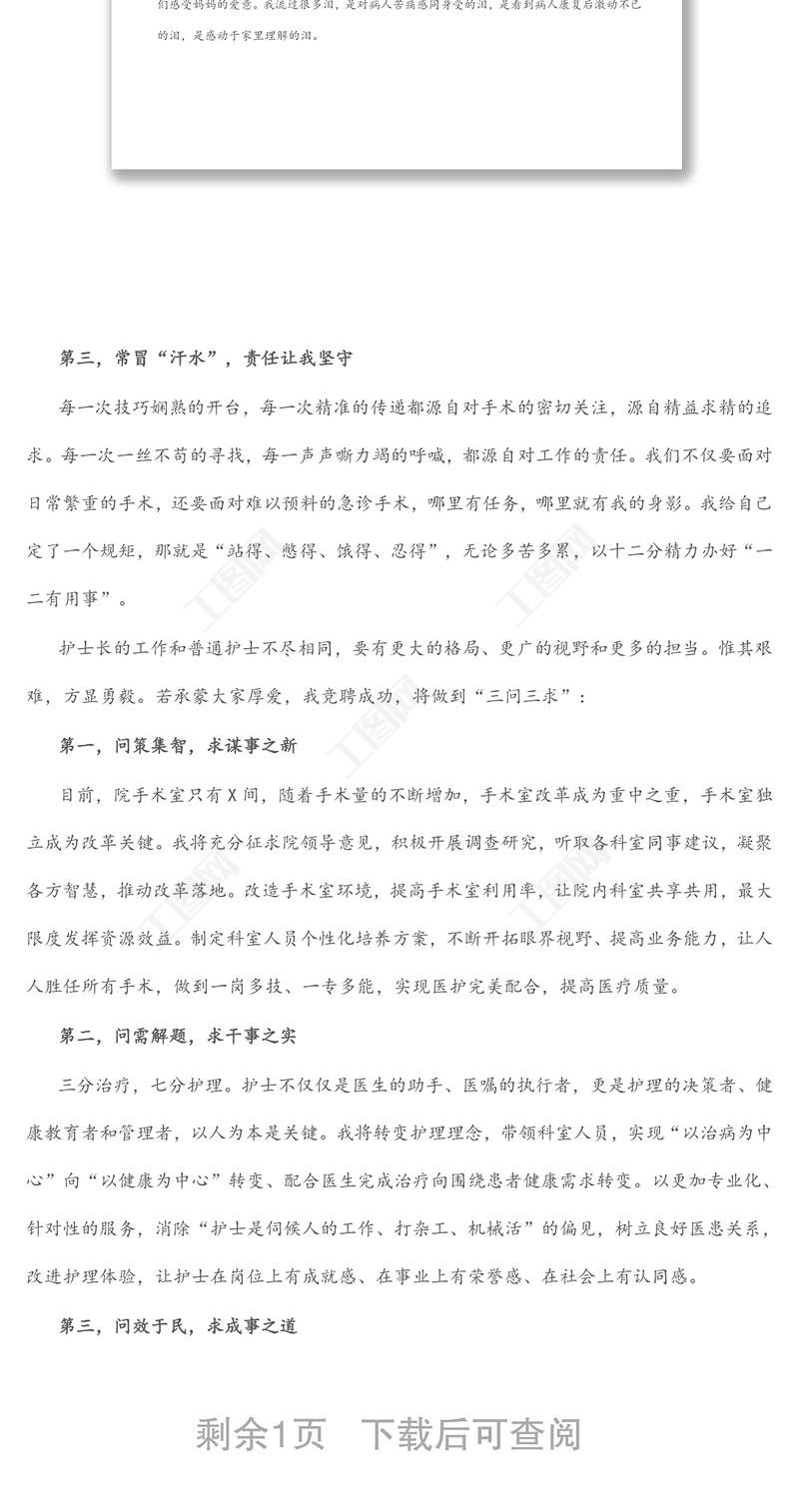 工圖網(wǎng)提供柔情似水 不負流年—手術(shù)室護士長競聘演講稿供會員免費下載。更多精彩黨課PPT素材,盡在工圖網(wǎng)。