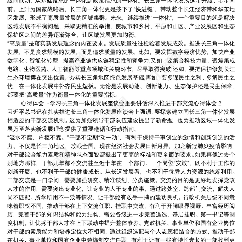 心得體會 -學(xué)習(xí)長三角一體化發(fā)展座談會重要講話深入推進干部交流心得體會 Array