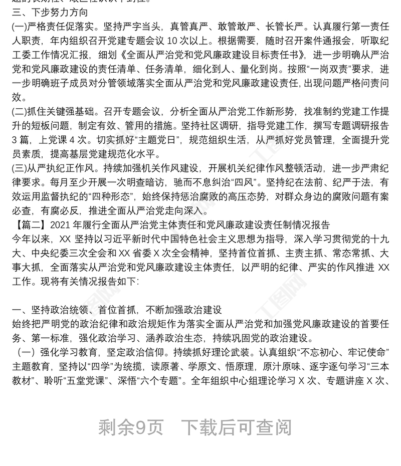 工圖網(wǎng)提供2021年履行全面從嚴治黨主體責任和黨風廉政建設(shè)責任制情況報告范文(精選5篇)供會員免費下載。更多精彩黨課PPT素材,盡在工圖網(wǎng)。
