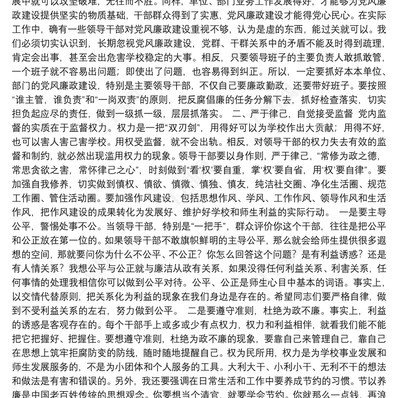 在新任職干部廉政談話會上的講話提綱黨風廉政建設包含