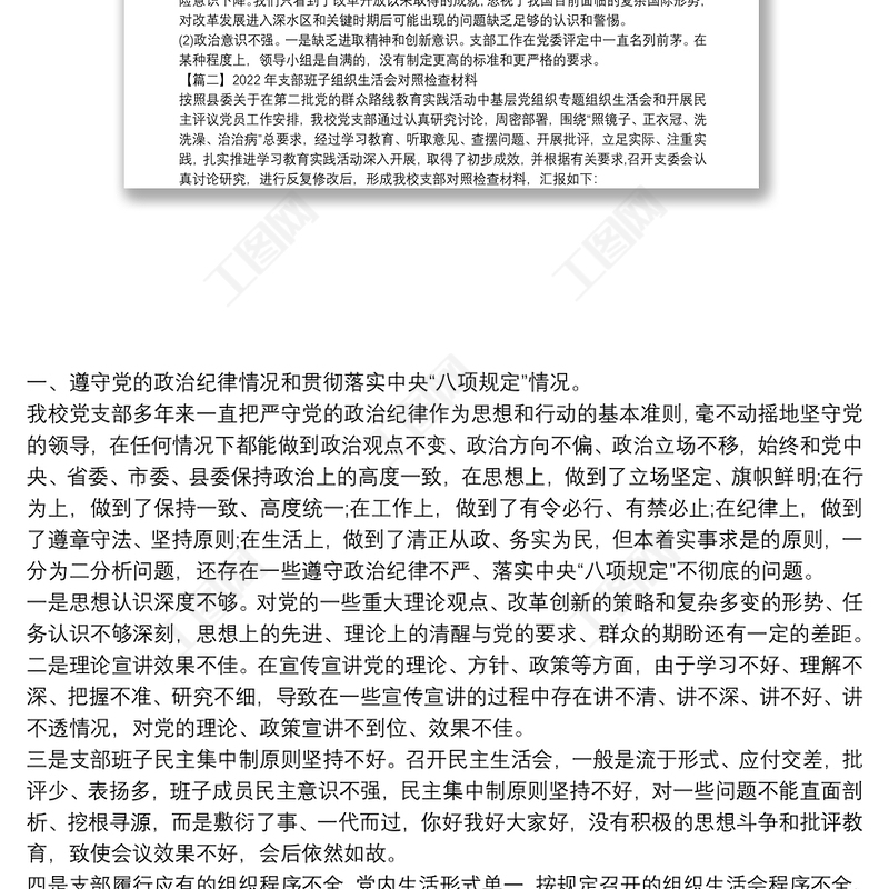 工圖網(wǎng)提供關(guān)于2022年支部班子組織生活會(huì)對照檢查材料【十八篇】供會(huì)員免費(fèi)下載。更多精彩黨課PPT素材,盡在工圖網(wǎng)。