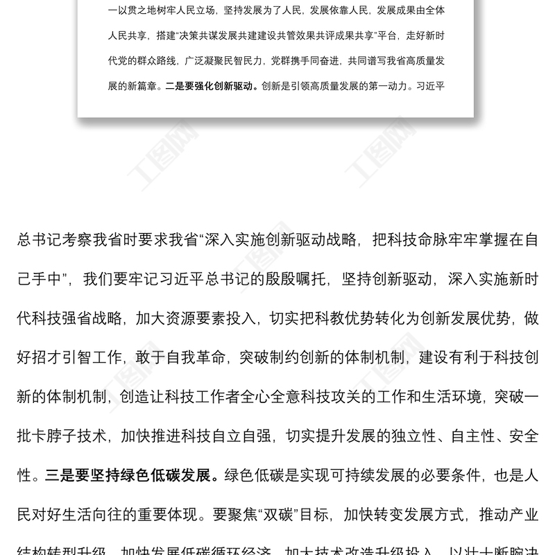 在貫徹新發(fā)展理念、推進高質(zhì)量發(fā)展座談會發(fā)言材料包含