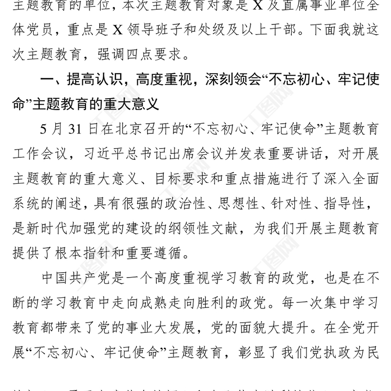 工圖網(wǎng)提供在第二批“不忘初心牢記使命”主題教育啟動會議上的講話不忘初心主題教育供會員免費(fèi)下載。更多精彩黨課PPT素材,盡在工圖網(wǎng)。