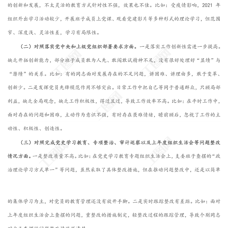工圖網(wǎng)提供2021年度組織生活會支部委員會對照檢查材料供會員免費下載。更多精彩黨課PPT素材,盡在工圖網(wǎng)。
