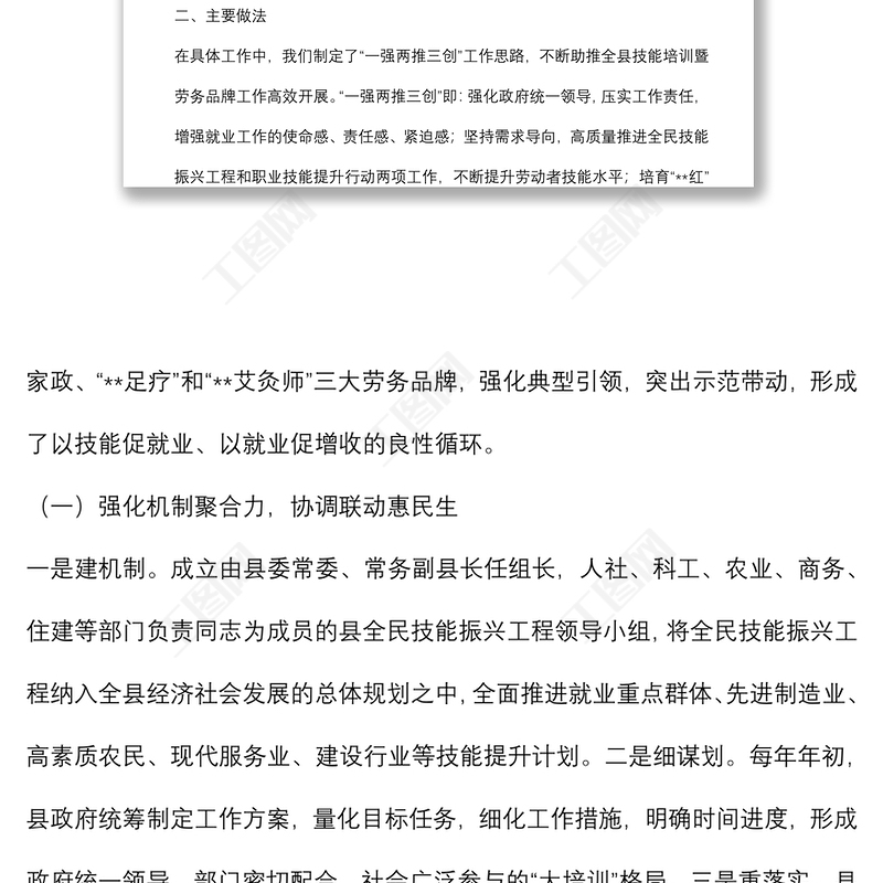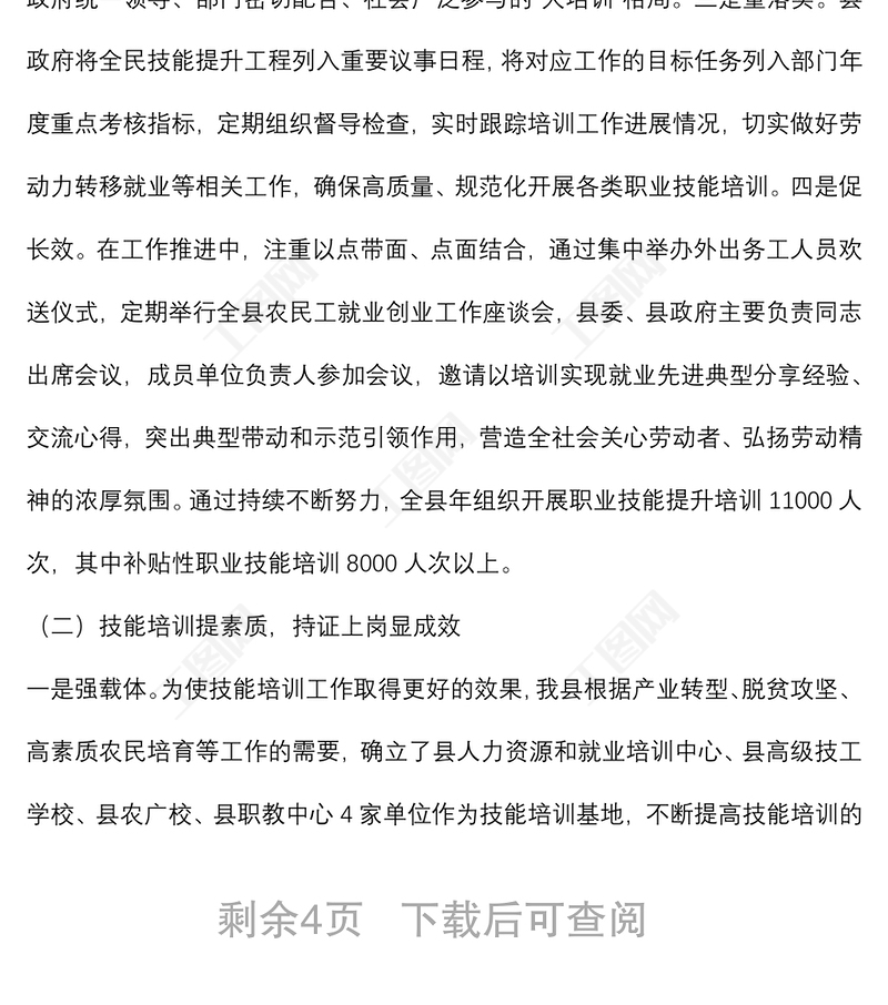 > 報(bào)告 > 技能培訓(xùn)譜新篇 鑄就品牌促振興——縣職業(yè)技能培訓(xùn)暨勞務(wù)品牌培育工作匯報(bào)材料.DOCX 【圖片、文字、動(dòng)畫均可編輯】