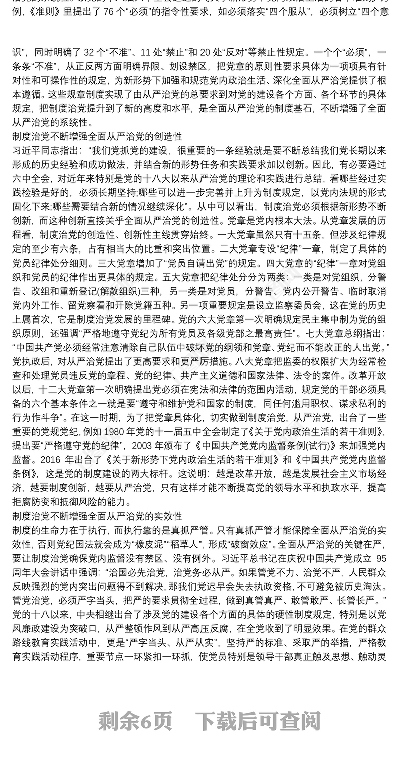 制度治黨全面從嚴(yán)治黨的重要保障心得11篇