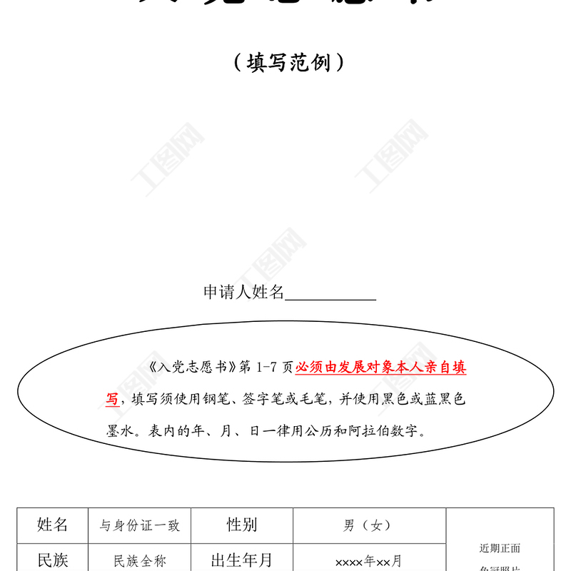 工圖網(wǎng)提供2021年入黨志愿書模板及填寫指導(dǎo)規(guī)范供會(huì)員免費(fèi)下載。更多精彩黨課PPT素材,盡在工圖網(wǎng)。