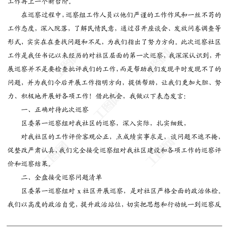 黨委書記在巡察組對xx社區(qū)的巡察反饋會上的表態(tài)發(fā)言,黨委書記在巡察組對xx社區(qū)的巡察反饋會上的表態(tài)發(fā)言 Array