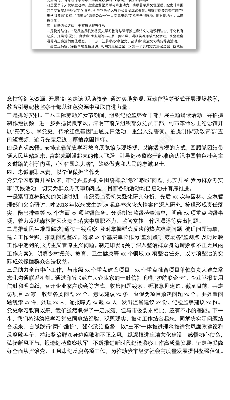 市紀(jì)委監(jiān)委黨史學(xué)習(xí)教育階段性工作總結(jié)范文 Array