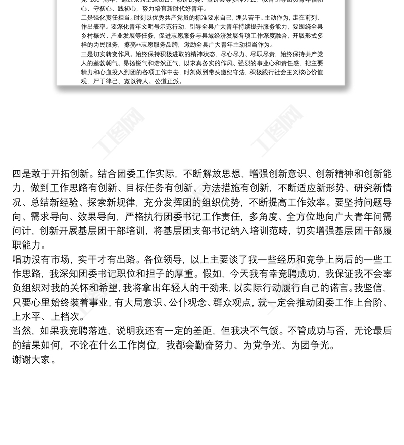 工圖網(wǎng)提供團(tuán)縣委書記競(jìng)聘演講稿供會(huì)員免費(fèi)下載。更多精彩黨課PPT素材,盡在工圖網(wǎng)。
