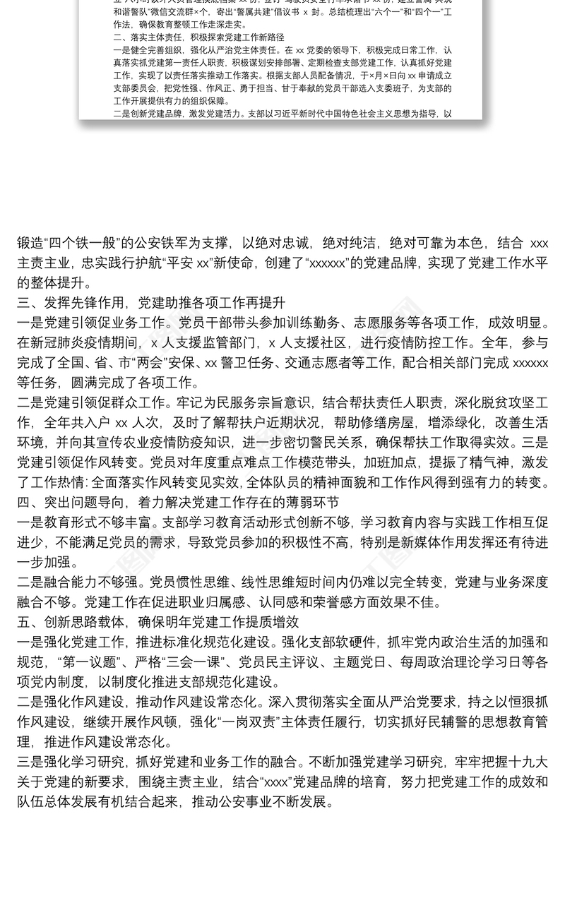 公安局科所隊(duì)支部書記抓黨建述職報(bào)告