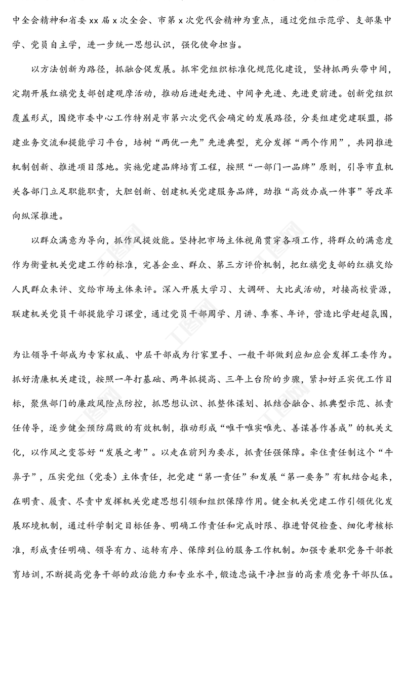 > 交流研討座談 > 政治機關(guān)建設(shè)工作開展情況研討發(fā)言、經(jīng)驗交流:強化政治機關(guān)意識 提升引領(lǐng)發(fā)展之能.DOCX 【圖片、文字、動畫均可編輯】