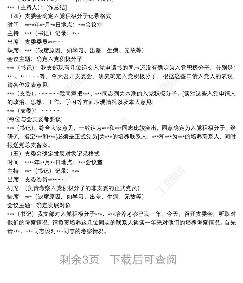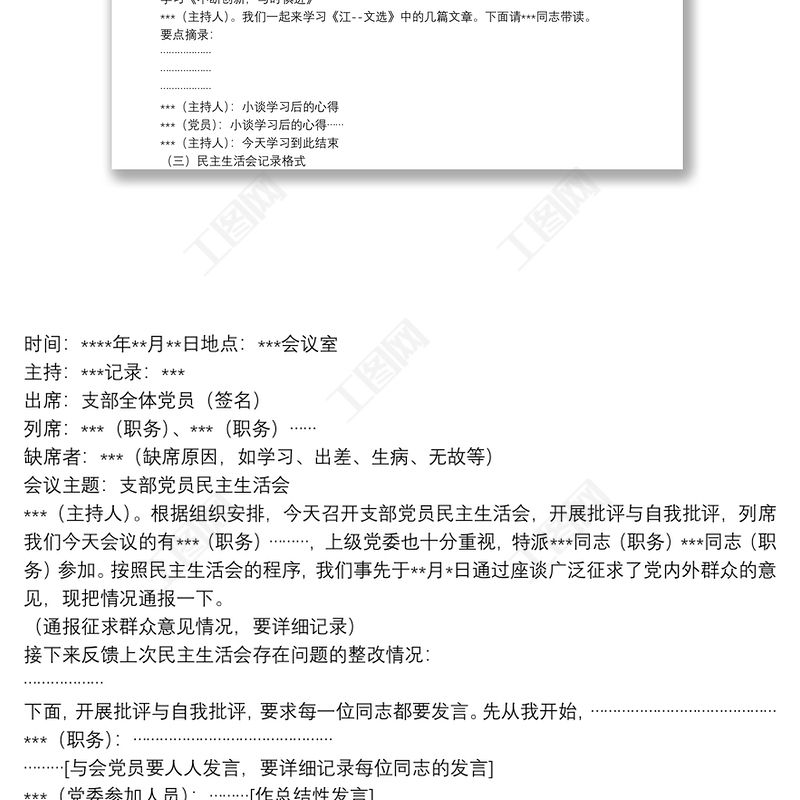 工圖網(wǎng)提供黨支部會(huì)議記錄格式供會(huì)員免費(fèi)下載。更多精彩黨課PPT素材,盡在工圖網(wǎng)。