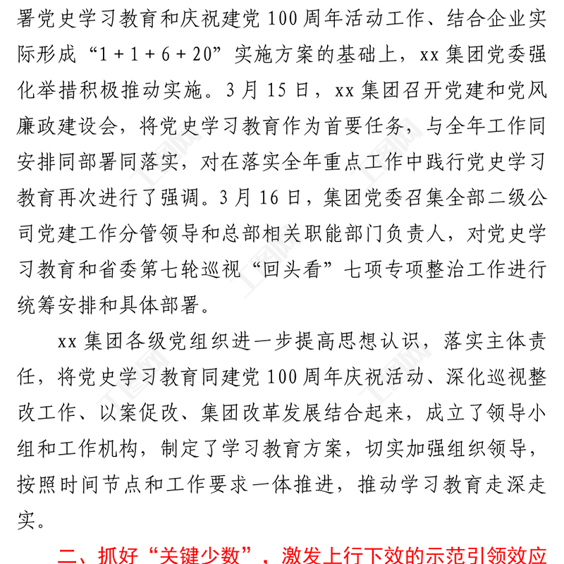 集團(tuán)公司開展黨史學(xué)習(xí)教育情況匯報