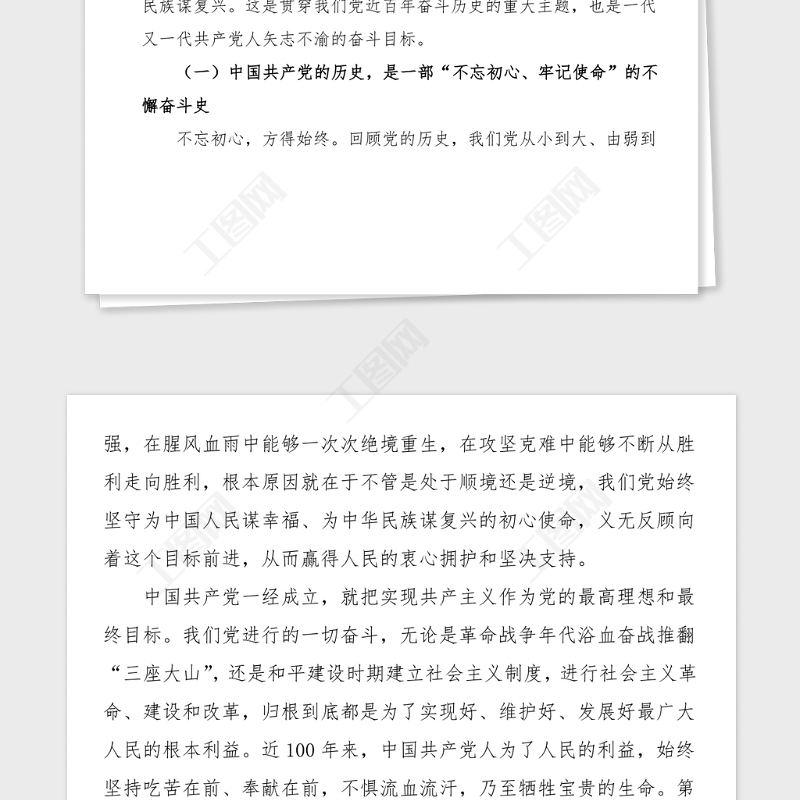 工圖網(wǎng)提供100周年黨課黨員干部要從黨的百年光輝歷史中堅(jiān)定初心使命100周年黨課講稿范文供會(huì)員免費(fèi)下載。更多精彩黨課PPT素材,盡在工圖網(wǎng)。
