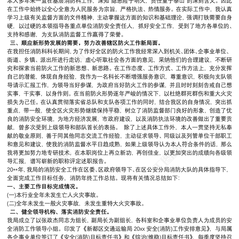消防個(gè)人工作述職報(bào)告