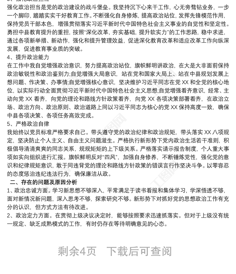 工圖網(wǎng)提供2020-20xx年縣處級(jí)科級(jí)黨員領(lǐng)導(dǎo)干部政治建設(shè)個(gè)人自查自評(píng)報(bào)告(現(xiàn)實(shí)表現(xiàn)材料供會(huì)員免費(fèi)下載。更多精彩黨課PPT素材,盡在工圖網(wǎng)。