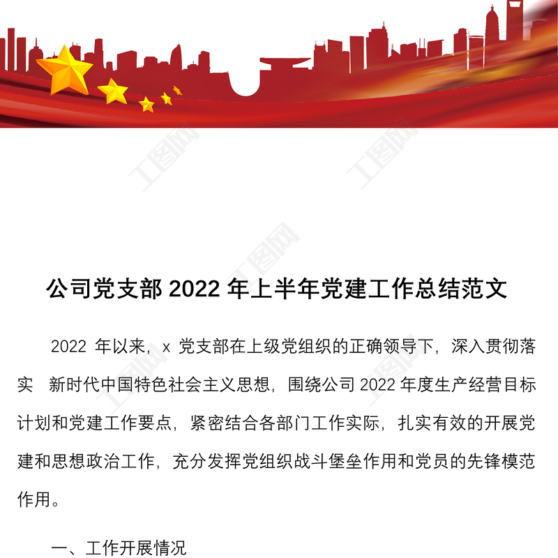 工圖網提供半年黨建總結2022年上半年黨建工作總結范文集團企業(yè)黨風廉政工作匯報報告供會員免費下載。更多精彩黨課PPT素材,盡在工圖網。