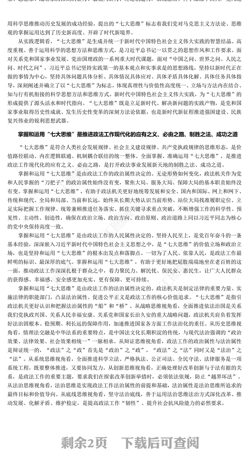 > 黨課講稿 > 學(xué)思踐悟“七大思維”精髓要義PPT黨政風(fēng)引領(lǐng)推動(dòng)新時(shí)代政法工作行穩(wěn)致遠(yuǎn)課件(講稿).DOCX 【圖片、文字、動(dòng)畫(huà)均可編輯】