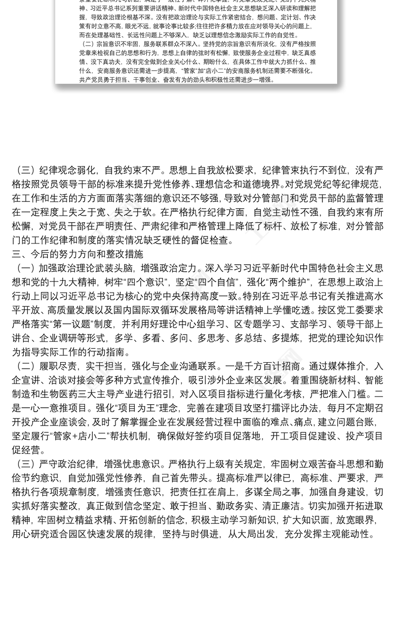 開發(fā)區(qū)巡察整改民主生活會對照檢查材料