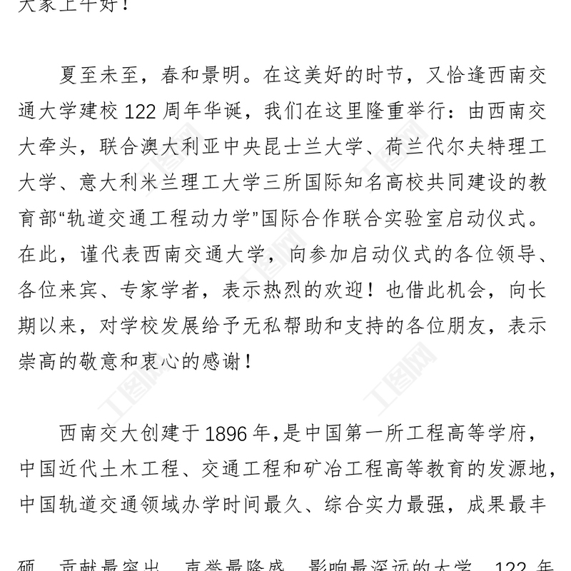 工圖網(wǎng)提供徐飛校長在“軌道交通工程動力學”國際合作聯(lián)合實驗室啟動儀式上的致辭供會員免費下載。更多精彩黨課PPT素材,盡在工圖網(wǎng)。