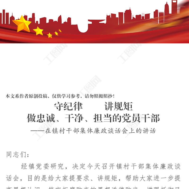 工圖網(wǎng)提供在鎮(zhèn)村干部集體廉政談話會(huì)上的講話廉政總結(jié)供會(huì)員免費(fèi)下載。更多精彩黨課PPT素材,盡在工圖網(wǎng)。