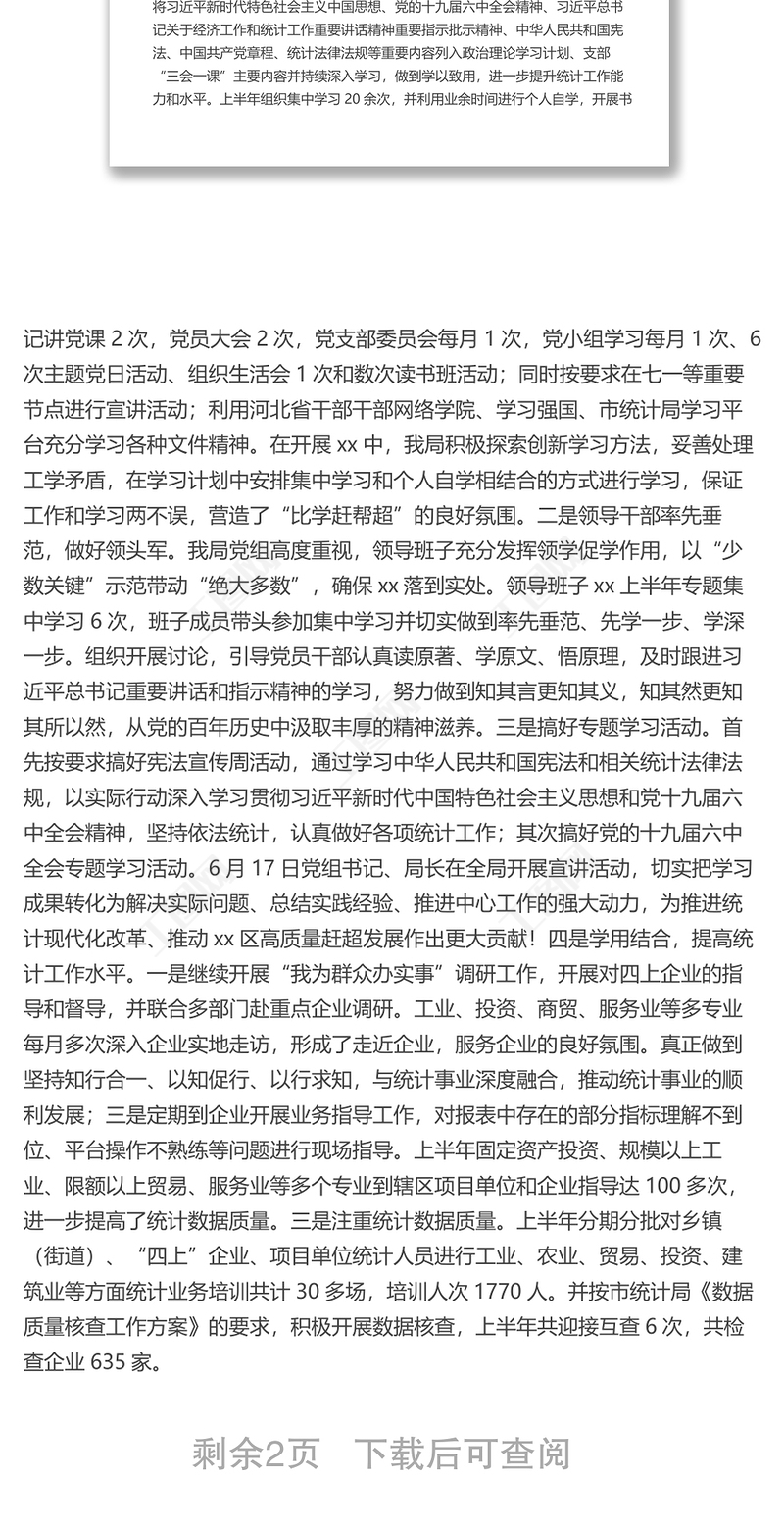 xx市xx區(qū)統(tǒng)計(jì)局2022年上半年黨建工作總結(jié)