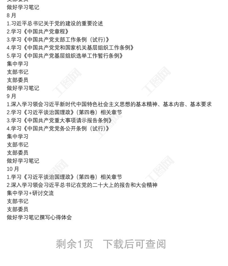 工圖網(wǎng)提供2022年度機(jī)關(guān)黨支部學(xué)習(xí)計(jì)劃供會(huì)員免費(fèi)下載。更多精彩黨課PPT素材,盡在工圖網(wǎng)。