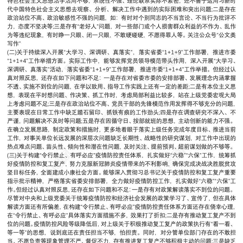 20xx年落實全面從嚴治黨主體責任營造良好政治生態(tài)專題民主生活會對照檢查材料