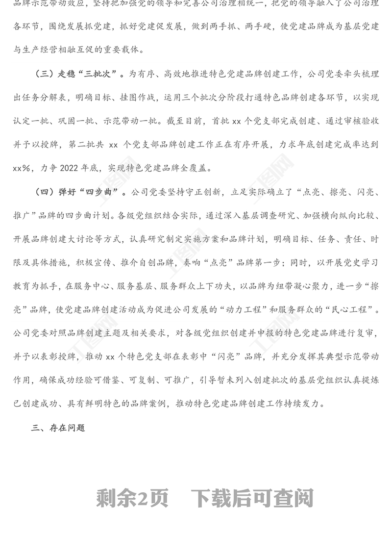 工圖網(wǎng)提供國(guó)企公司特色黨建品牌創(chuàng)建經(jīng)驗(yàn)材料供會(huì)員免費(fèi)下載。更多精彩黨課PPT素材,盡在工圖網(wǎng)。