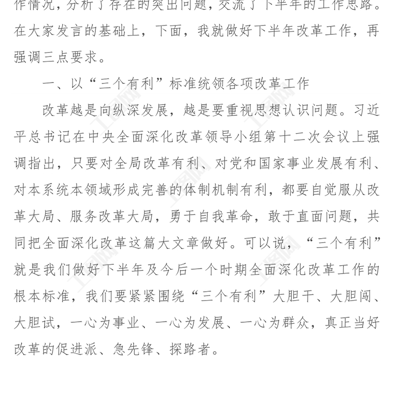 > 領(lǐng)導(dǎo)講話 > 始終堅持“三個有利”標(biāo)準(zhǔn)深入推動全面深化改革工作取得新突破-在市委全面深化改革領(lǐng)導(dǎo)小組第六次會議上的講話.DOCX 【圖片、文字、動畫均可編輯】