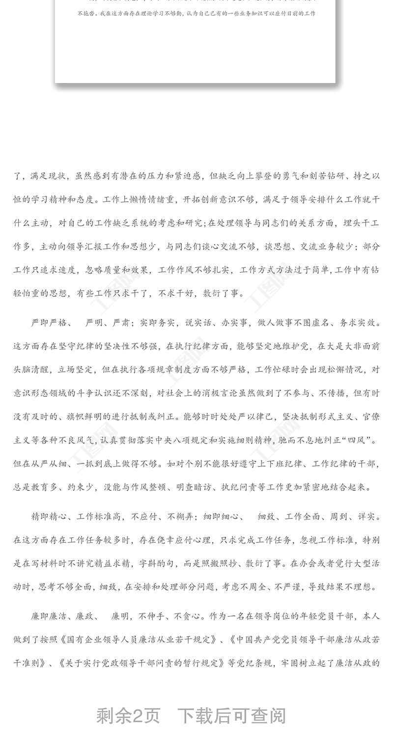 工圖網(wǎng)提供黨員干部“嚴(yán)守紀(jì)律規(guī)矩,加強(qiáng)作風(fēng)建設(shè)”對(duì)照檢查材料供會(huì)員免費(fèi)下載。更多精彩黨課PPT素材,盡在工圖網(wǎng)。